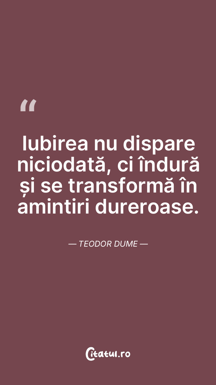 Iubirea nu dispare niciodată, ci îndură și se ... Citește tot citatul >