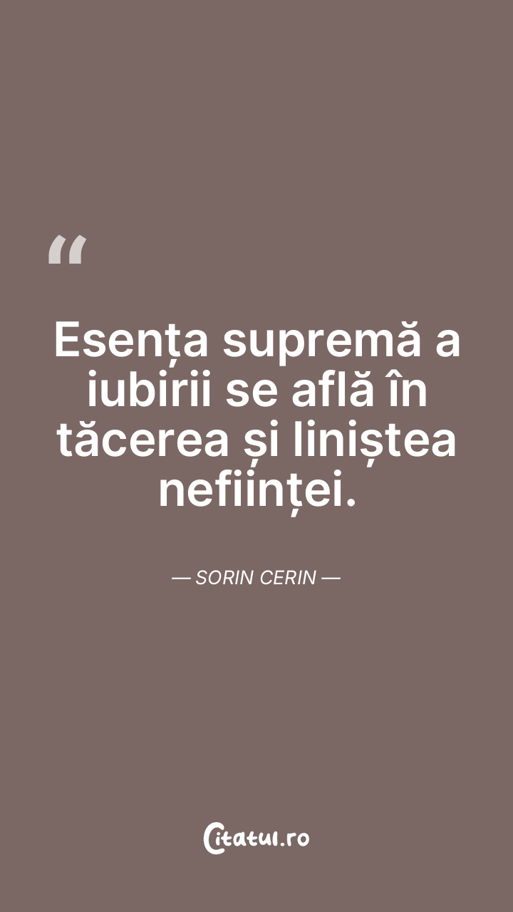 Esența supremă a iubirii se află în tăcerea ș ... Citește tot citatul >
