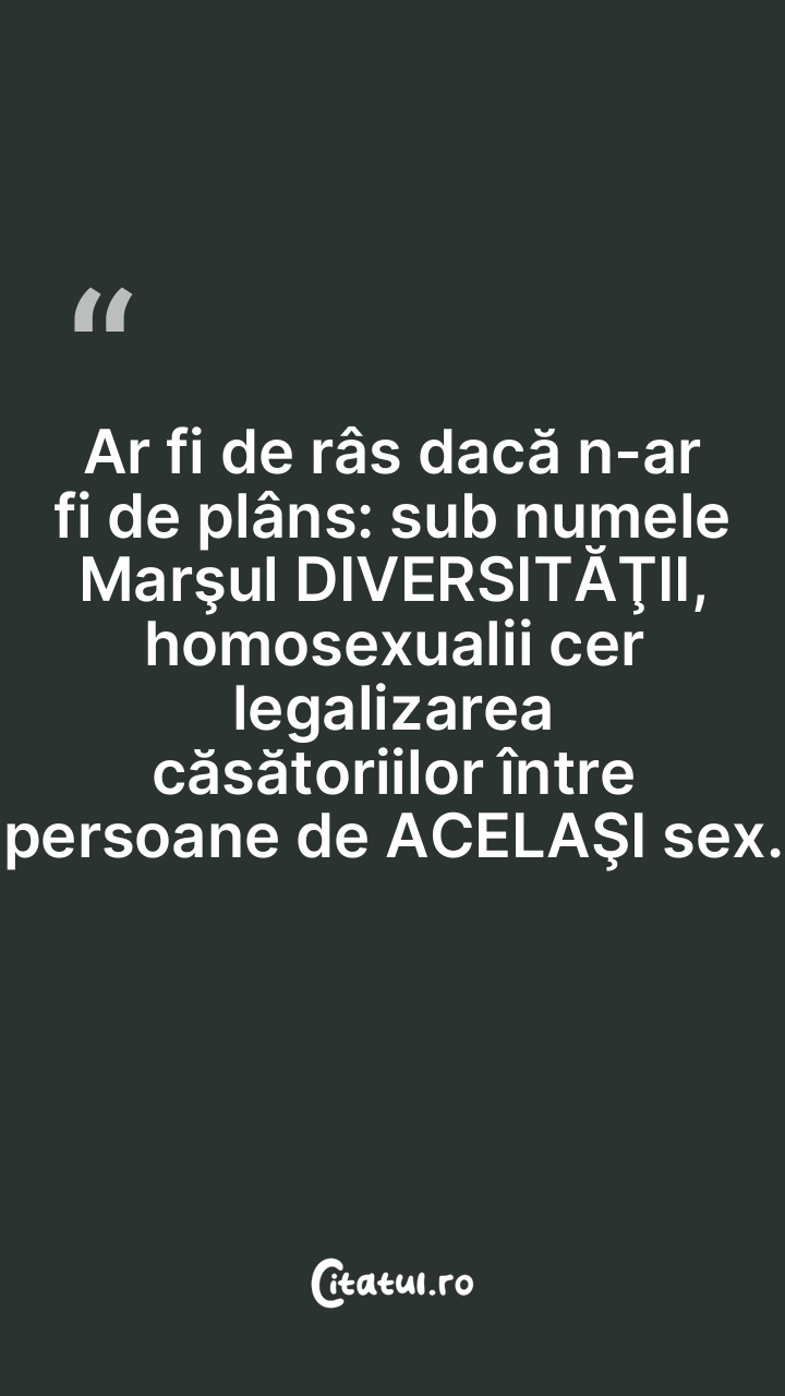 Înmulţirea nemăsurată a cuplurilor de homosex ... Citește tot citatul >