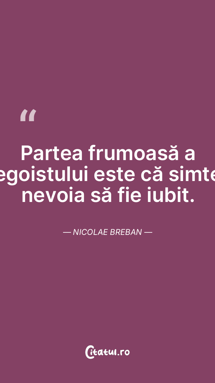 Partea frumoasă a egoistului este că simte ne ... Citește tot citatul >