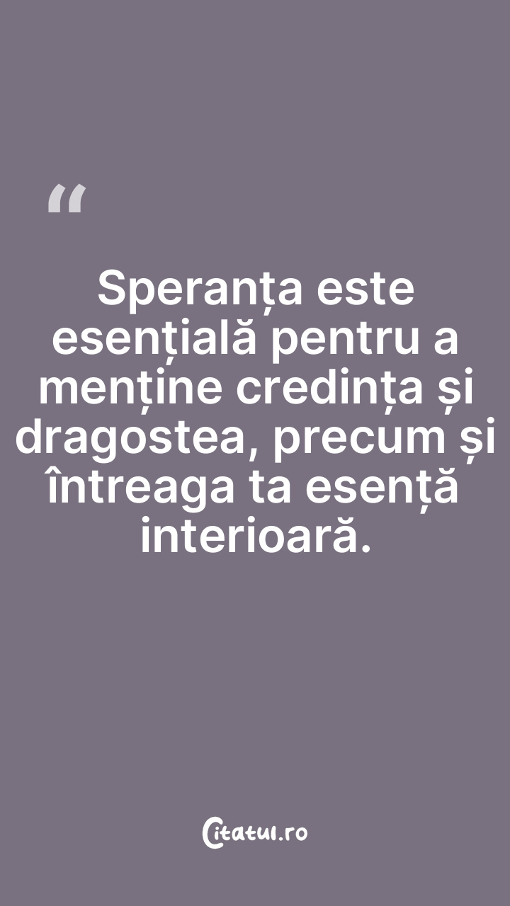 Speranța este esențială pentru a menține cred ... Citește tot citatul >