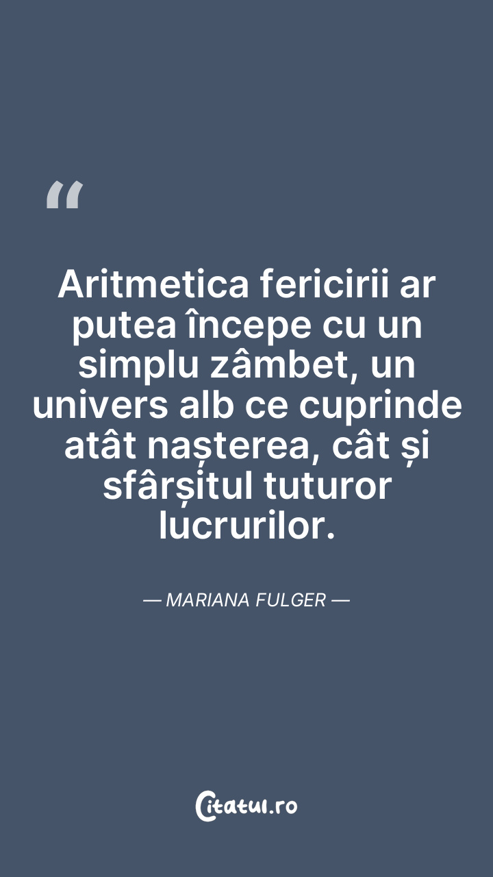 Aritmetica fericirii ar putea începe cu un si ... Citește tot citatul >