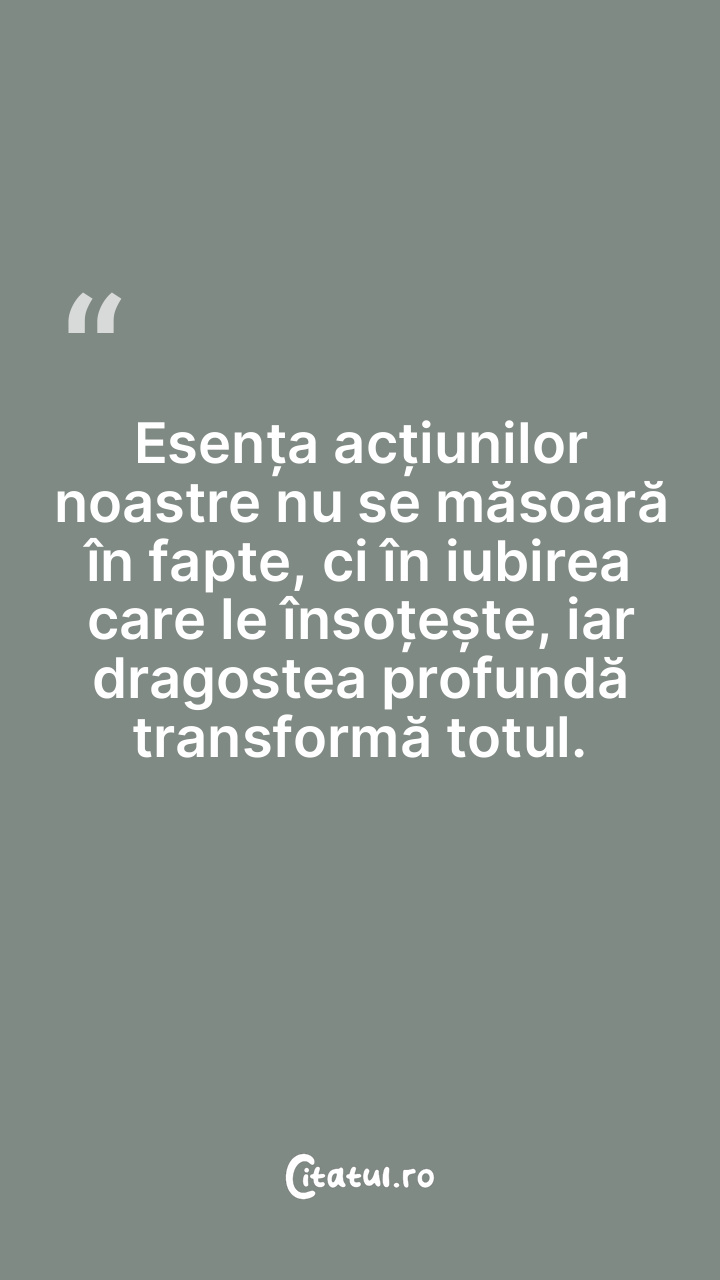 Esența acțiunilor noastre nu se măsoară în fa ... Citește tot citatul >
