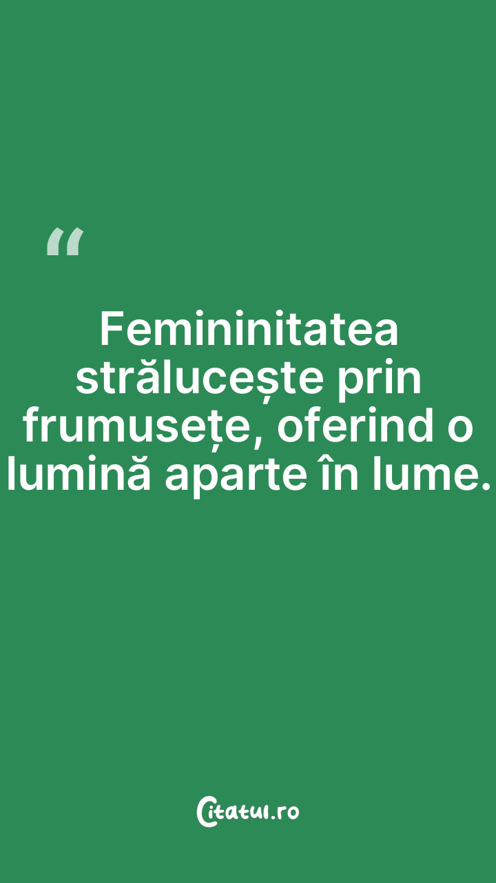 Femininitatea strălucește prin frumusețe, ofe ... Citește tot citatul >