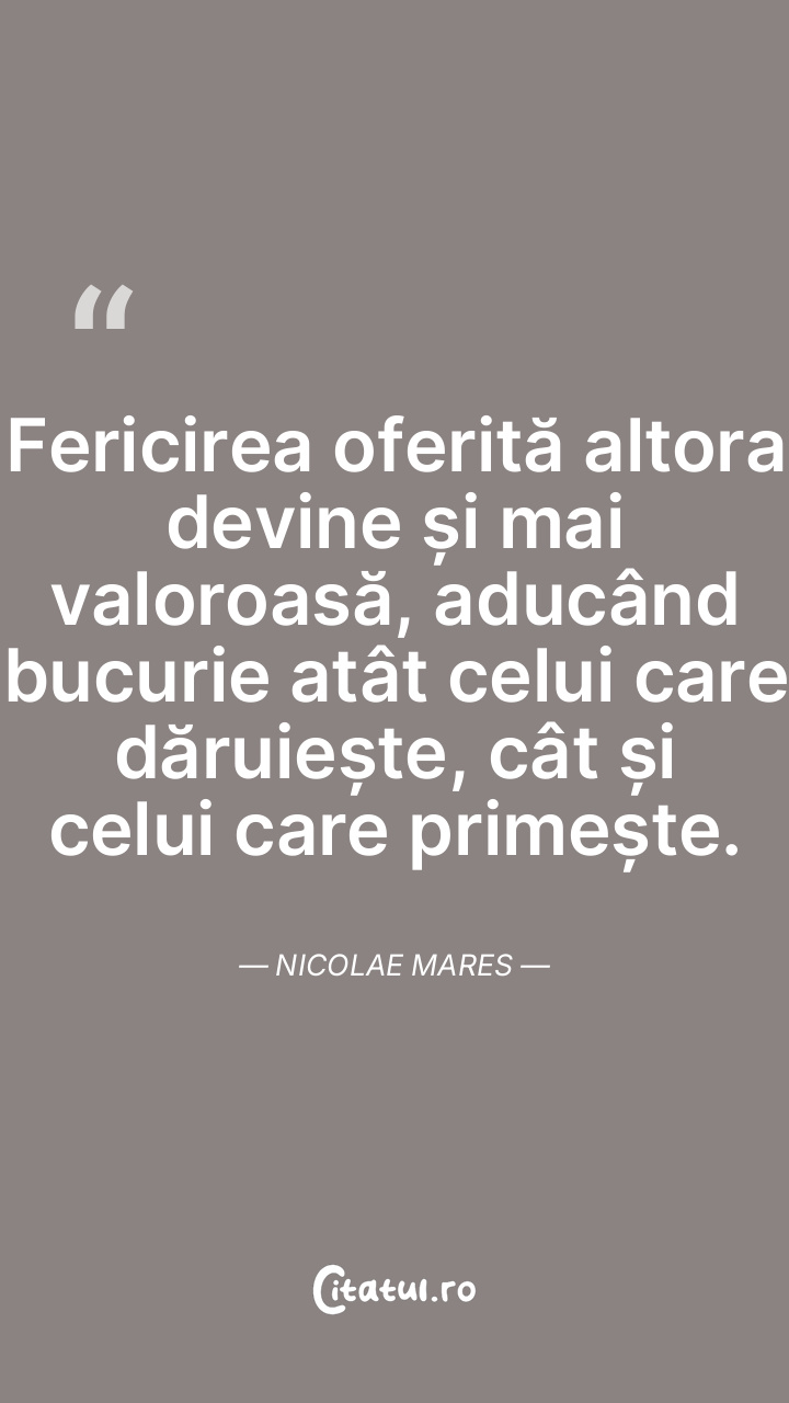 Fericirea oferită altora devine și mai valoro ... Citește tot citatul >