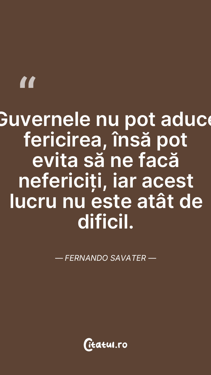 Guvernele nu pot aduce fericirea, însă pot ev ... Citește tot citatul >