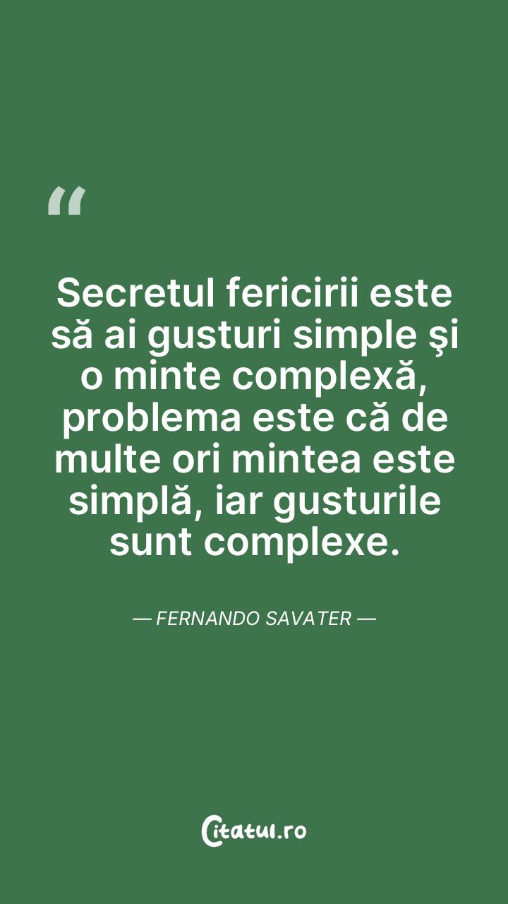 Secretul fericirii este să ai gusturi simple ... Citește tot citatul >