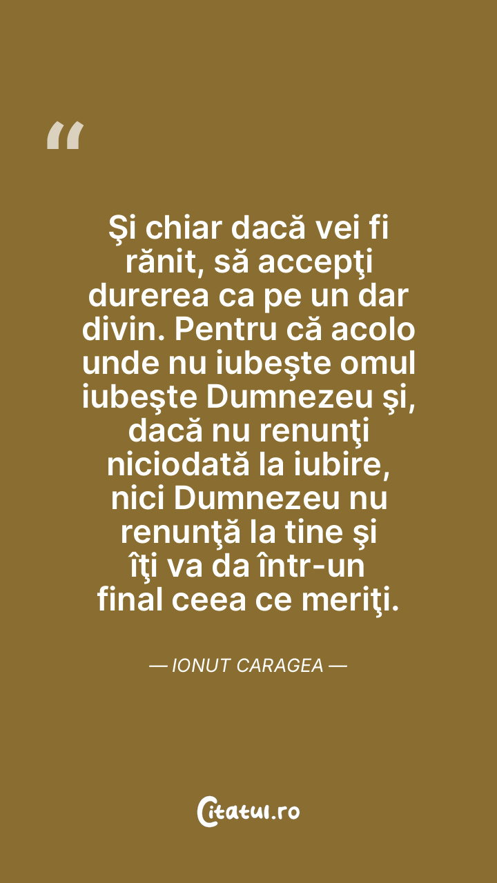Şi chiar dacă vei fi rănit, să accepţi durere ... Citește tot citatul >