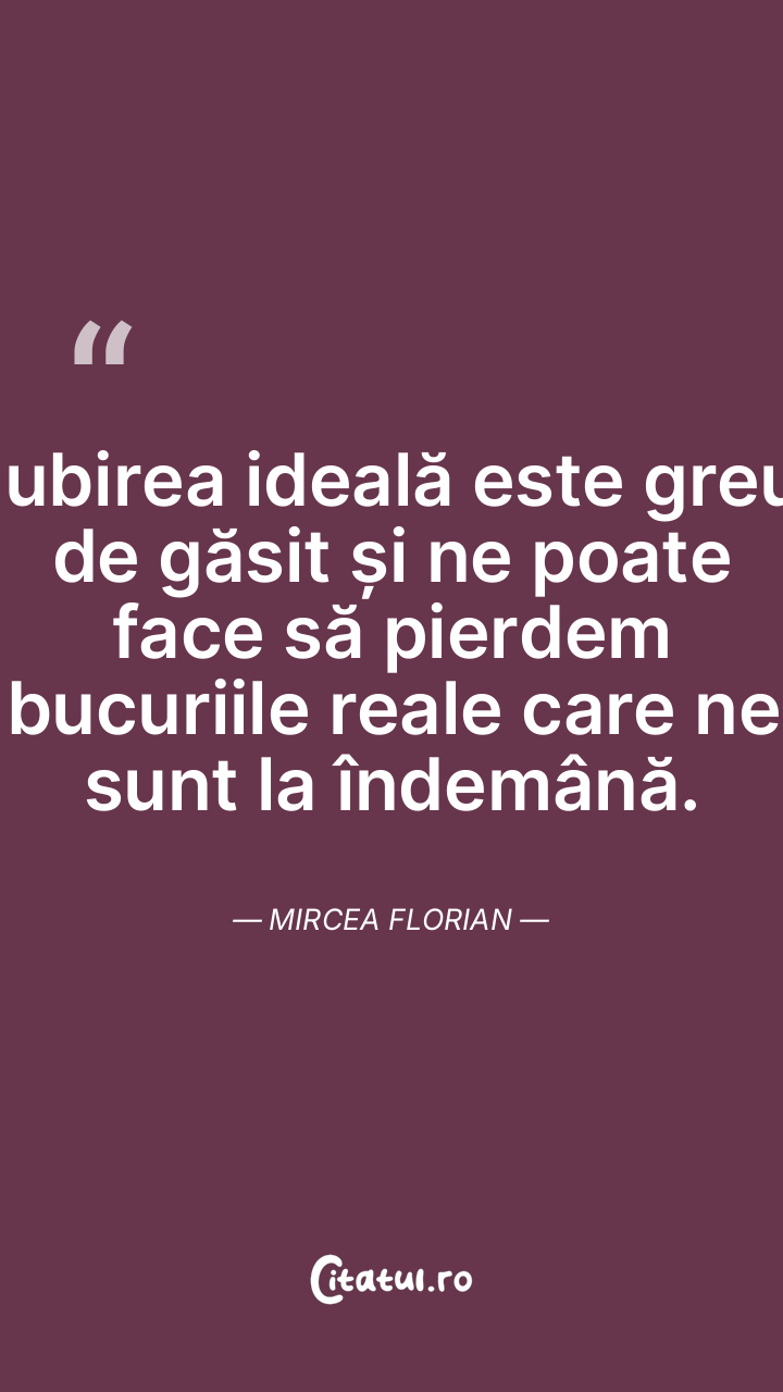 Iubirea ideală este greu de găsit și ne poate ... Citește tot citatul >