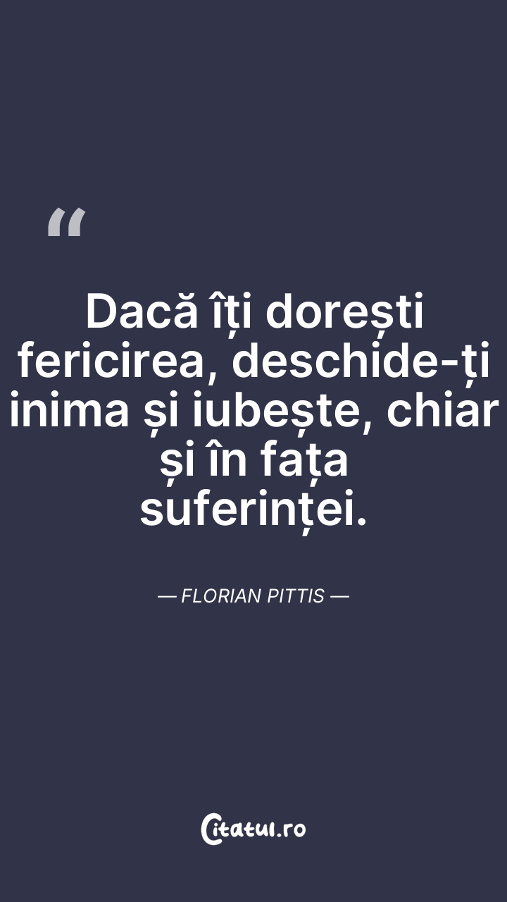 Dacă îți dorești fericirea, deschide-ți inima ... Citește tot citatul >
