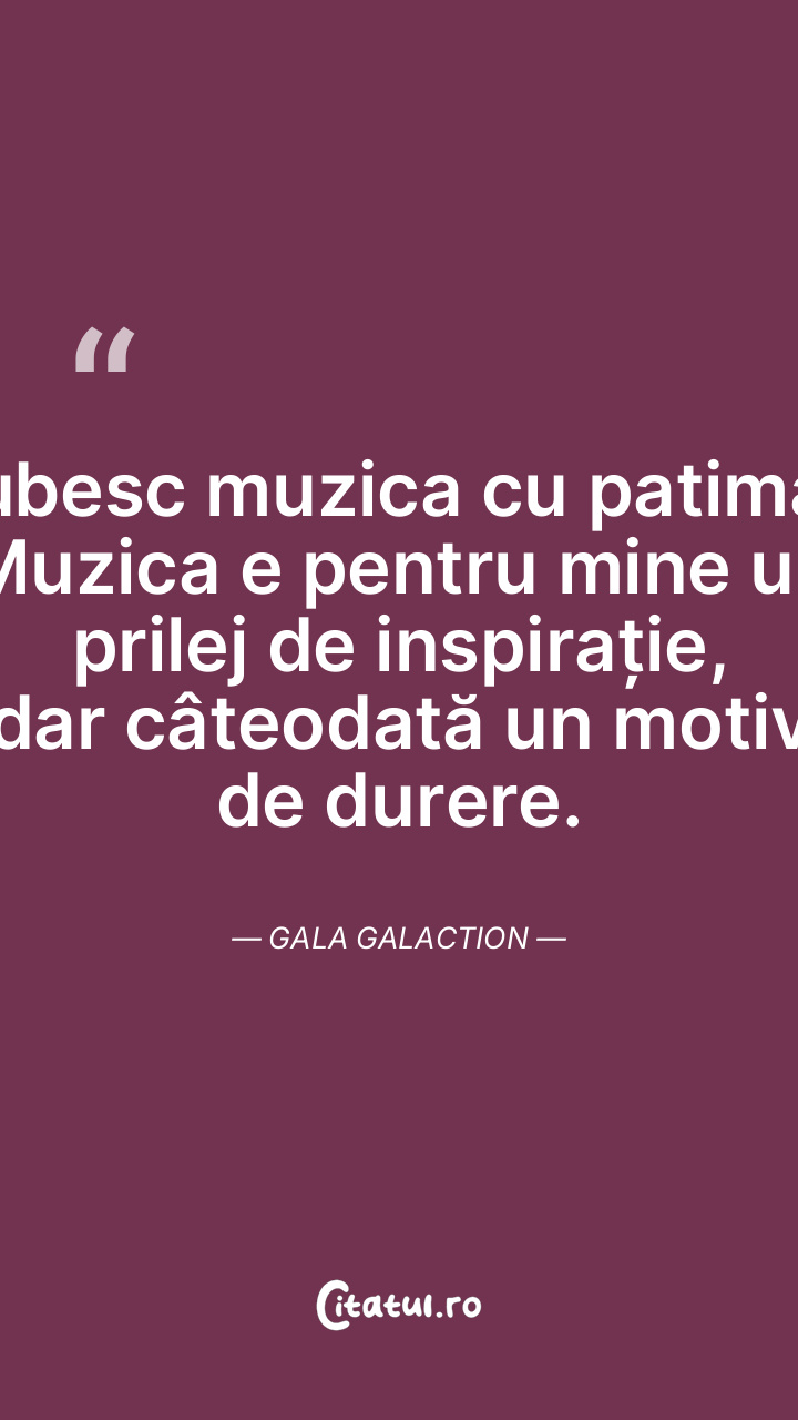Iubesc muzica cu patimă. Muzica e pentru mine ... Citește tot citatul >