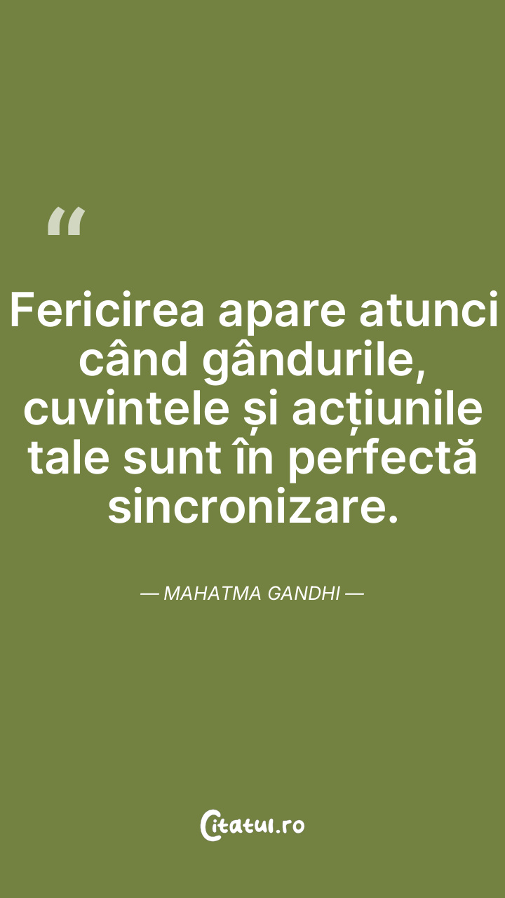 Fericirea apare atunci când gândurile, cuvint ... Citește tot citatul >