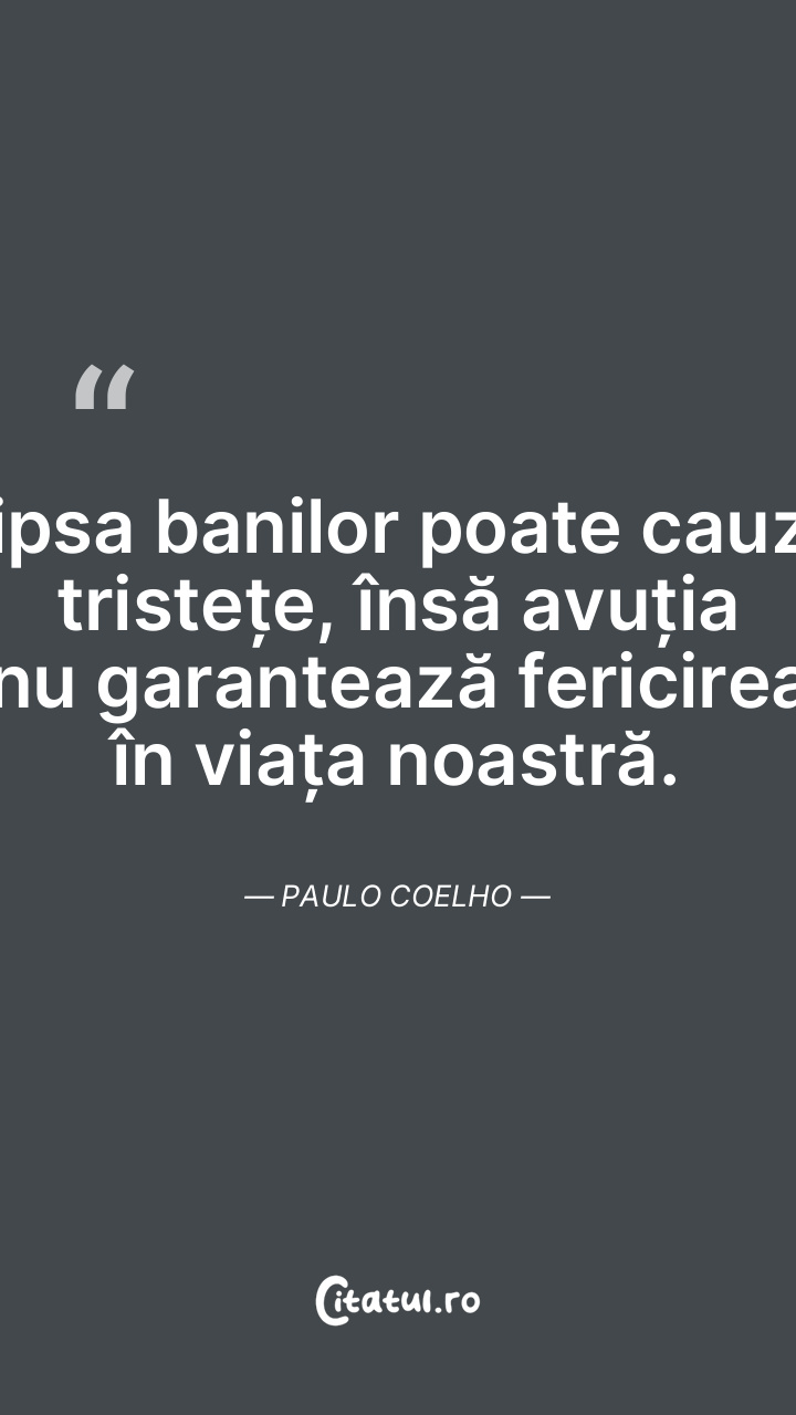 Lipsa banilor poate cauza tristețe, însă avuț ... Citește tot citatul >