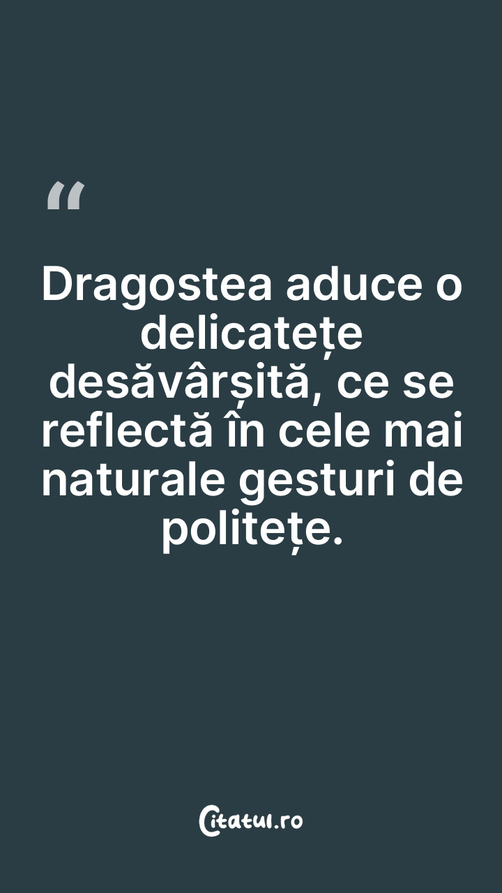 Dragostea aduce o delicatețe desăvârșită, ce ... Citește tot citatul >