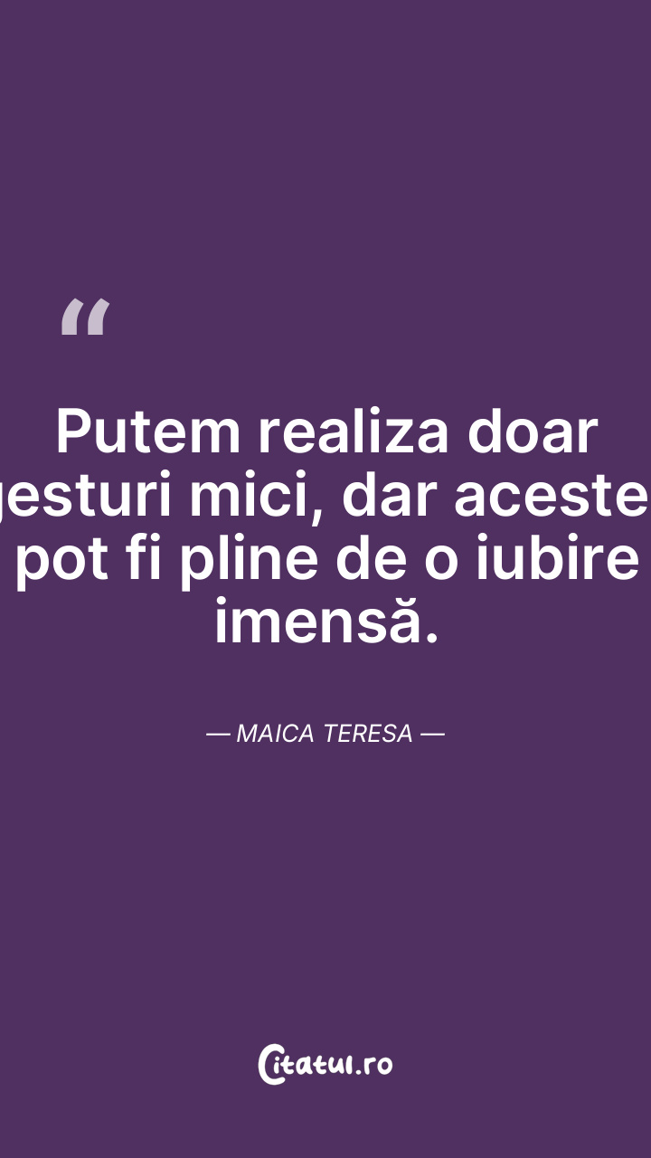Putem realiza doar gesturi mici, dar acestea ... Citește tot citatul >
