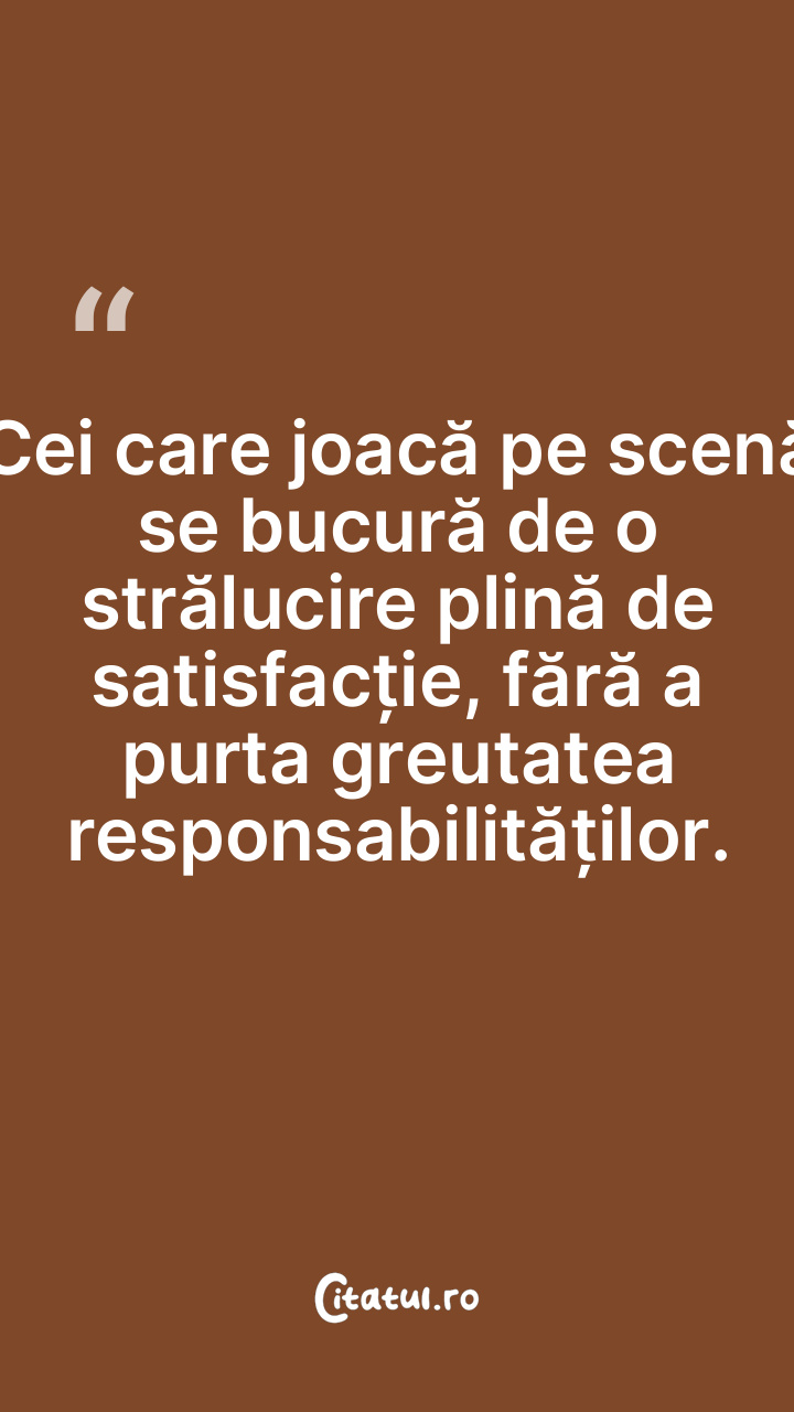 Cei care joacă pe scenă se bucură de o strălu ... Citește tot citatul >