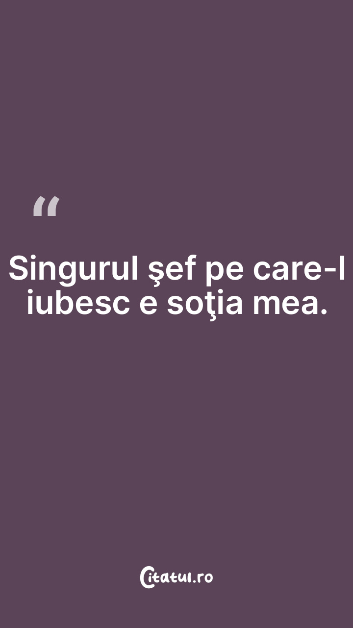 Singurul şef pe care-l iubesc e soţia mea.