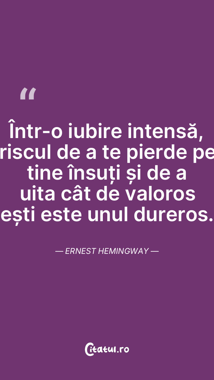 Într-o iubire intensă, riscul de a te pierde ... Citește tot citatul >