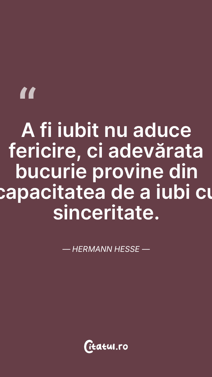 A fi iubit nu aduce fericire, ci adevărata bu ... Citește tot citatul >