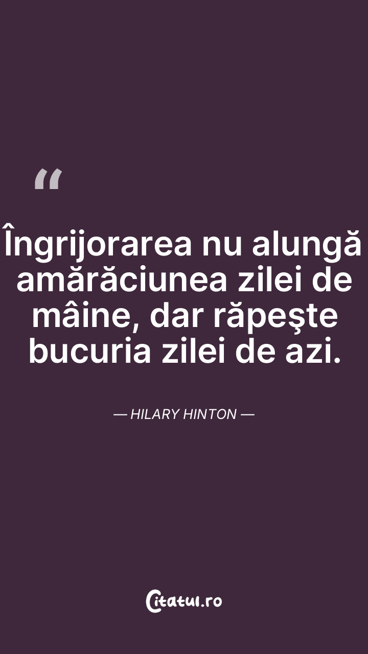 Îngrijorarea nu alungă amărăciunea zilei de m ... Citește tot citatul >