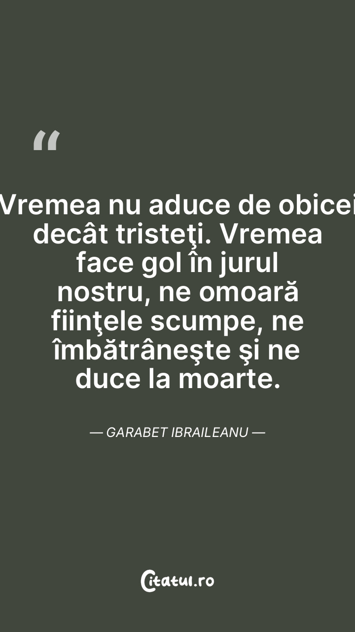 Vremea nu aduce de obicei decât tristeţi. Vre ... Citește tot citatul >