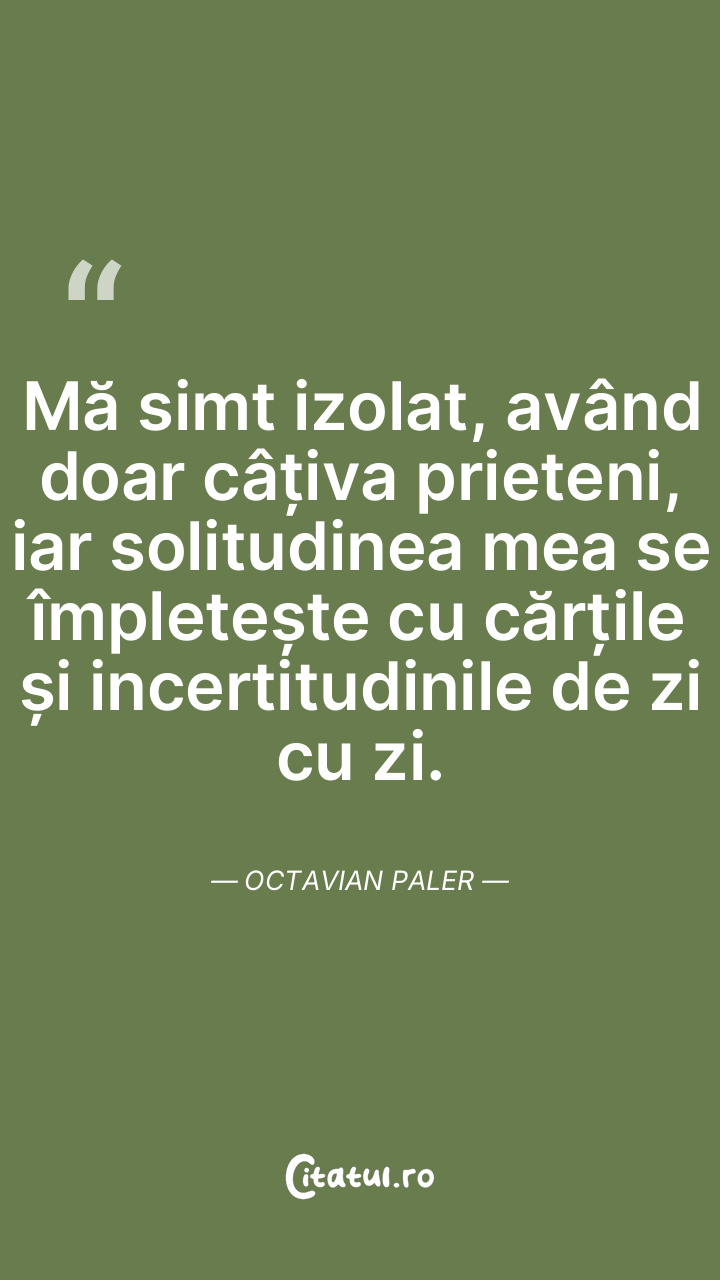 Mă simt izolat, având doar câțiva prieteni, i ... Citește tot citatul >