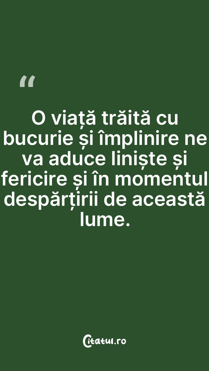 O viață trăită cu bucurie și împlinire ne va ... Citește tot citatul >
