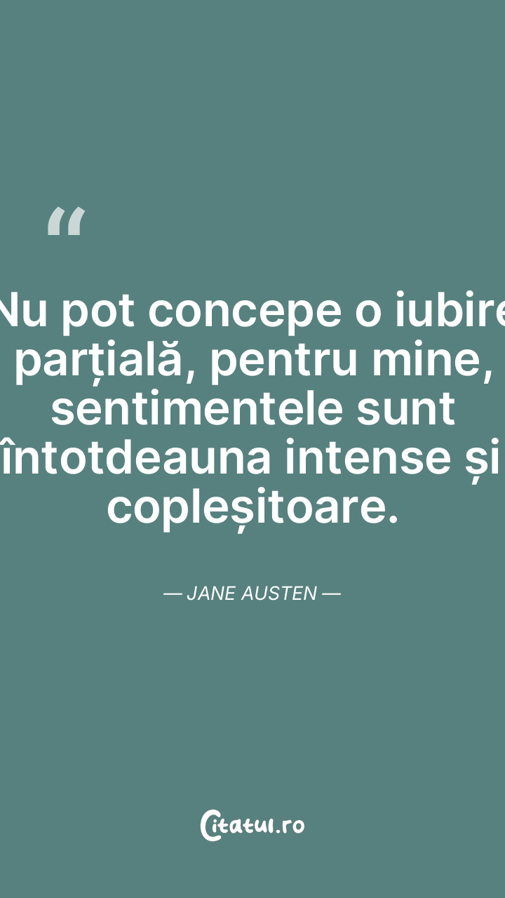 Nu pot concepe o iubire parțială, pentru mine ... Citește tot citatul >