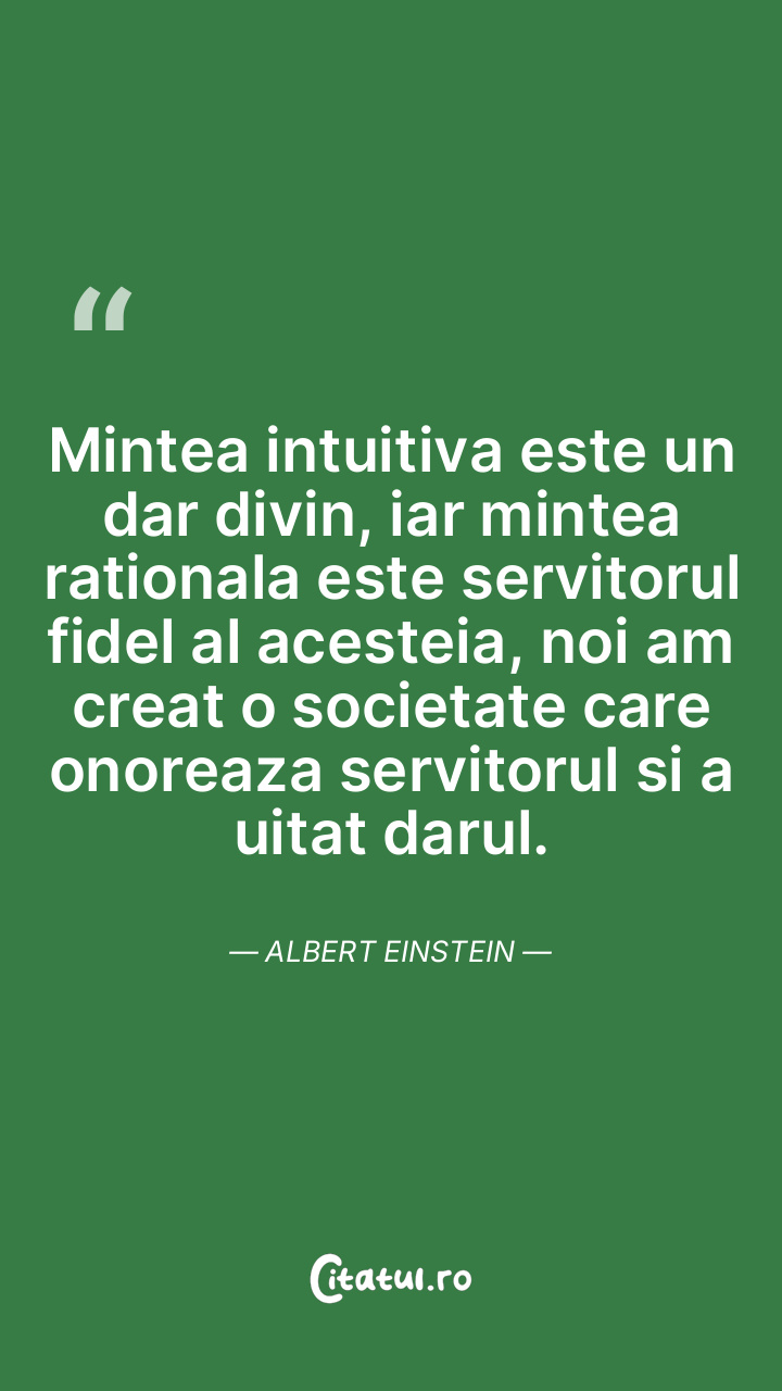 Mintea intuitiva este un dar divin, iar minte ... Citește tot citatul >