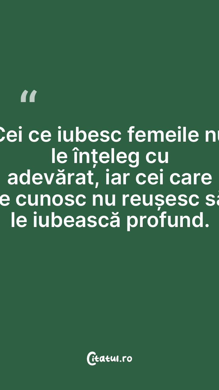 Cei ce iubesc femeile nu le înțeleg cu adevăr ... Citește tot citatul >