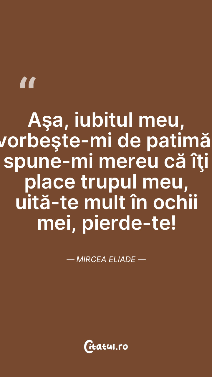 Aşa, iubitul meu, vorbeşte-mi de patimă, spun ... Citește tot citatul >