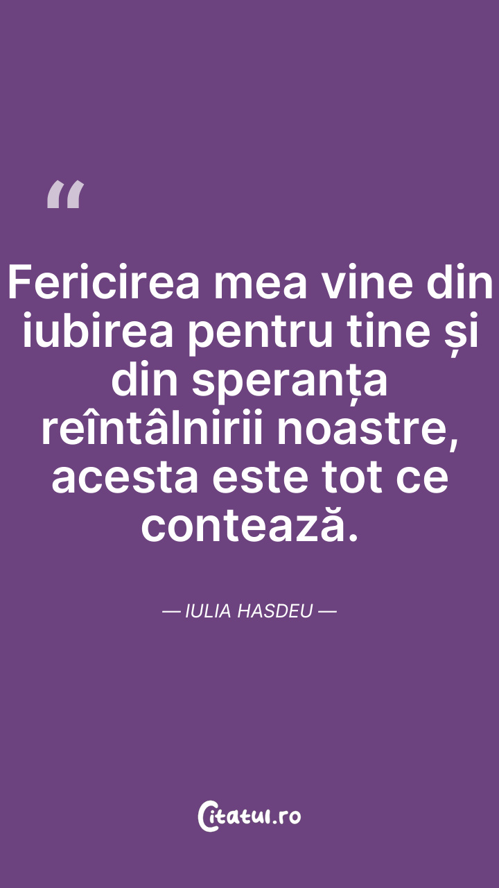 Fericirea mea vine din iubirea pentru tine și ... Citește tot citatul >