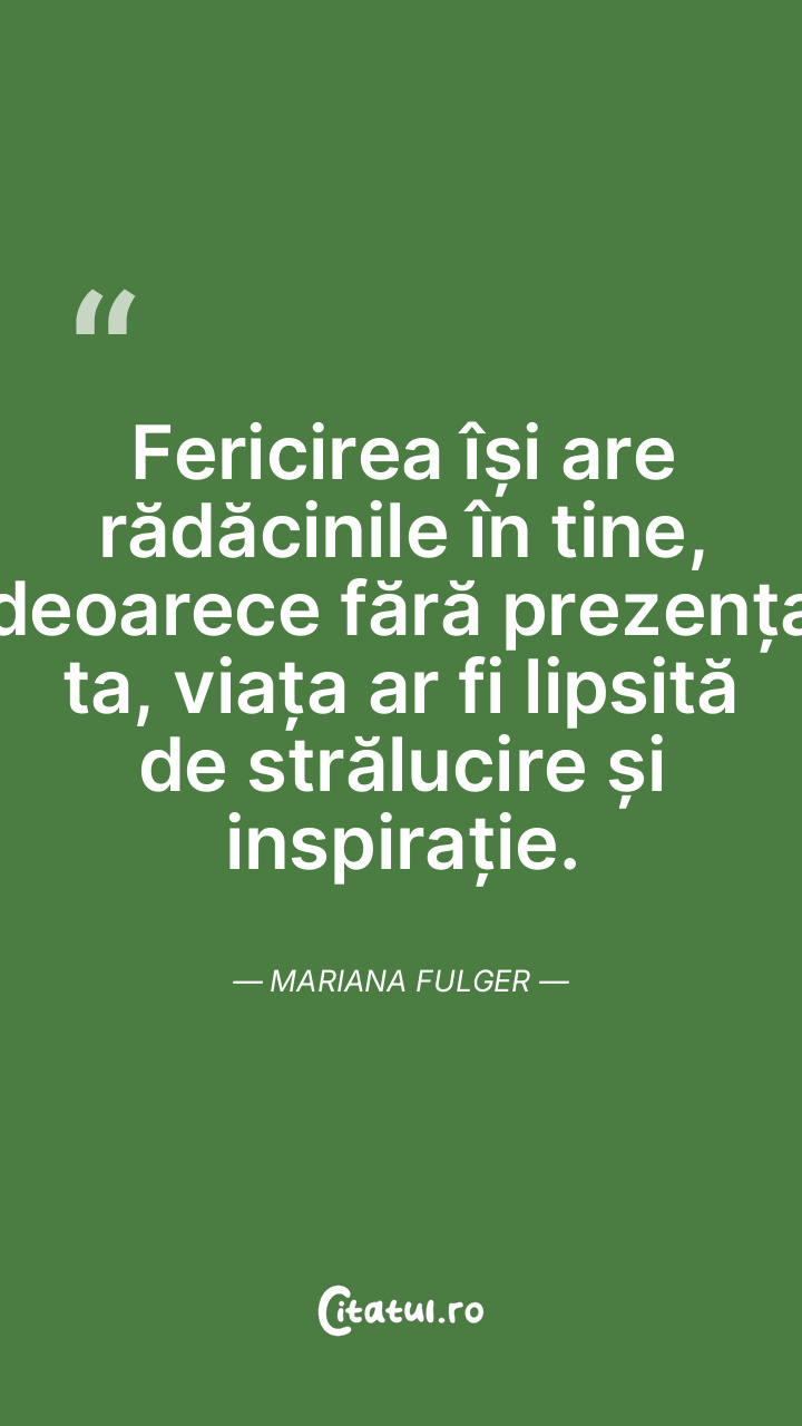Fericirea își are rădăcinile în tine, deoarec ... Citește tot citatul >