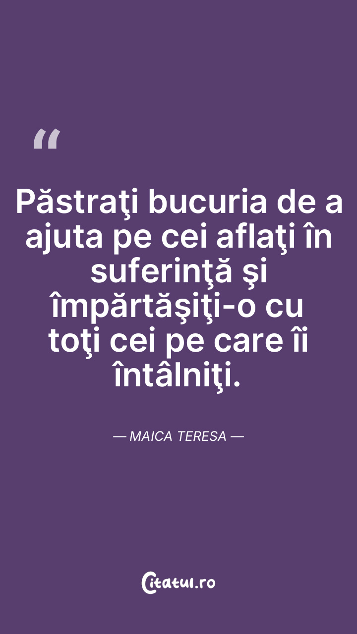 Păstraţi bucuria de a ajuta pe cei aflaţi în ... Citește tot citatul >