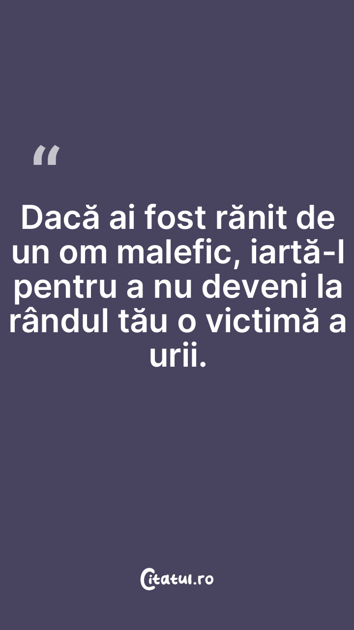 Dacă ai fost rănit de un om malefic, iartă-l ... Citește tot citatul >