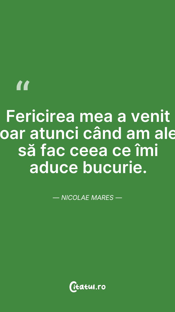 Fericirea mea a venit doar atunci când am ale ... Citește tot citatul >