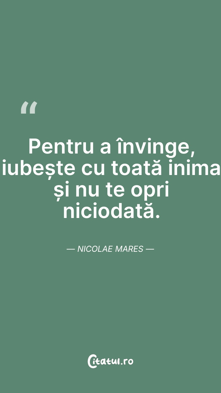 Pentru a învinge, iubește cu toată inima și n ... Citește tot citatul >