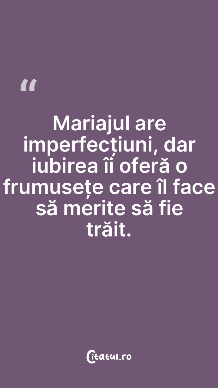 Mariajul are imperfecțiuni, dar iubirea îi of ... Citește tot citatul >