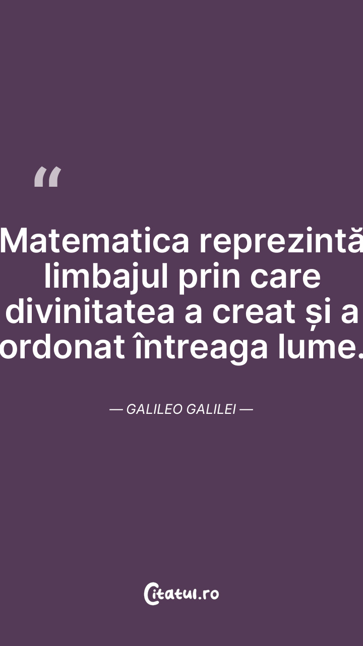 Matematica reprezintă limbajul prin care divi ... Citește tot citatul >
