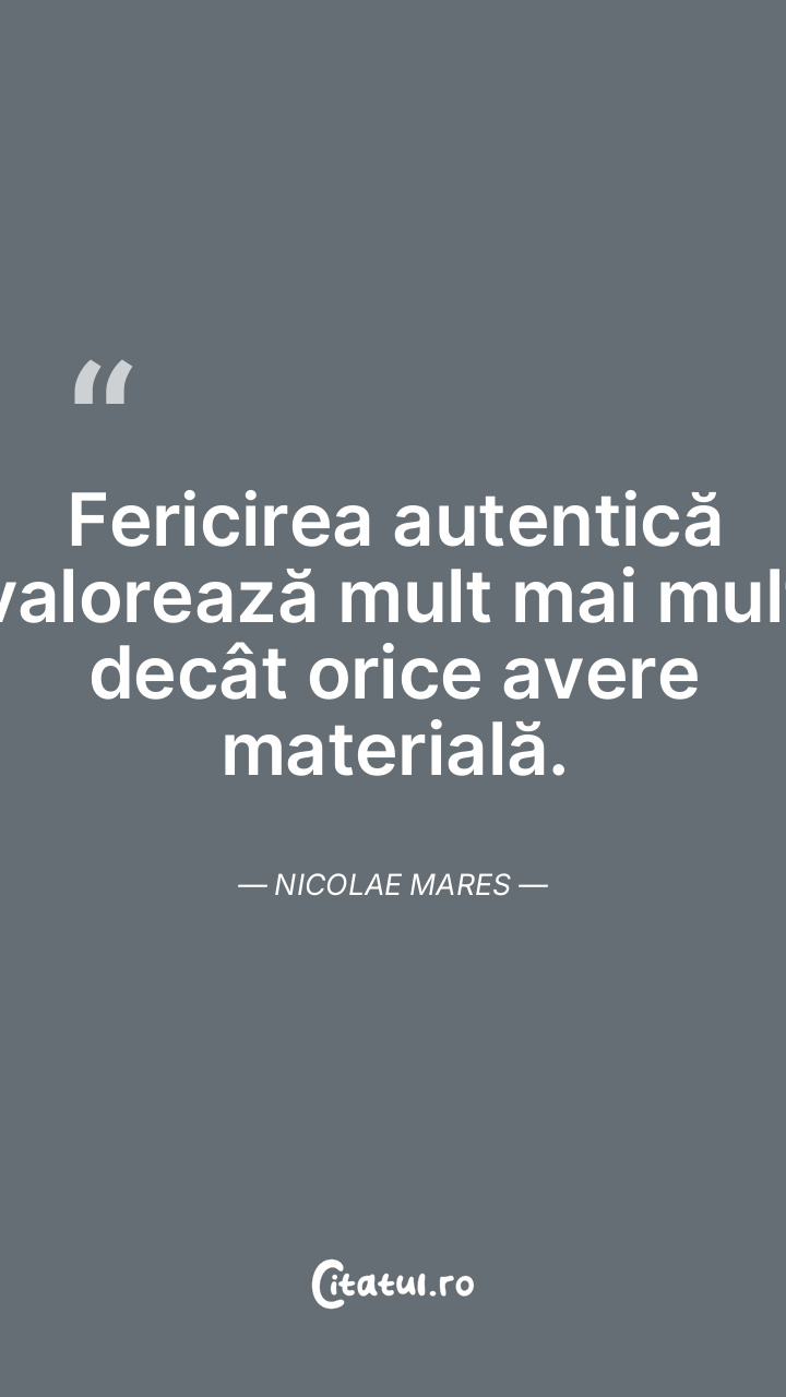 Fericirea autentică valorează mult mai mult d ... Citește tot citatul >