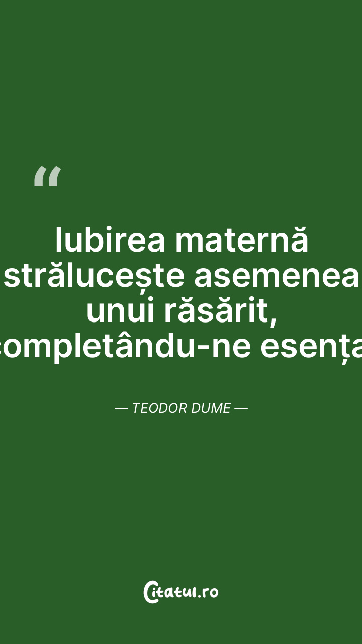 Iubirea maternă strălucește asemenea unui răs ... Citește tot citatul >