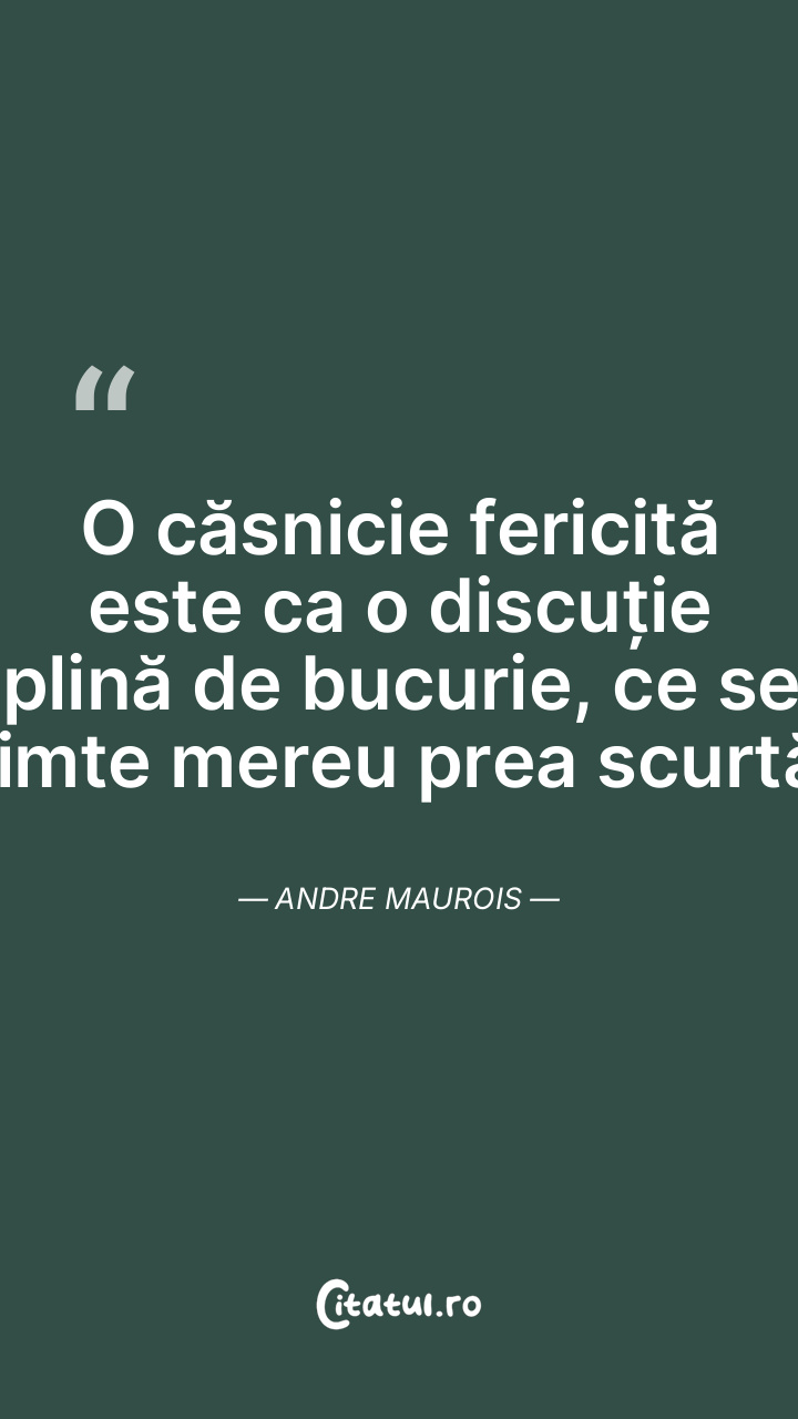O căsnicie fericită este ca o discuție plină ... Citește tot citatul >