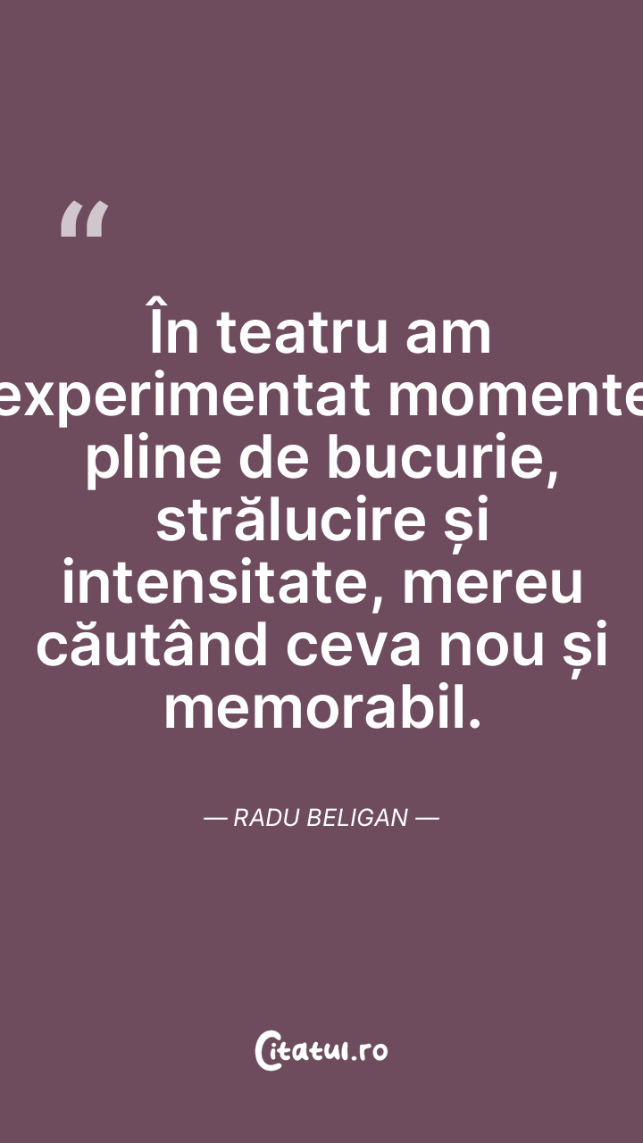 În teatru am experimentat momente pline de bu ... Citește tot citatul >