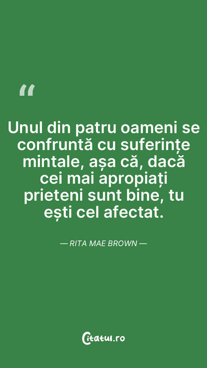 Unul din patru oameni se confruntă cu suferin ... Citește tot citatul >
