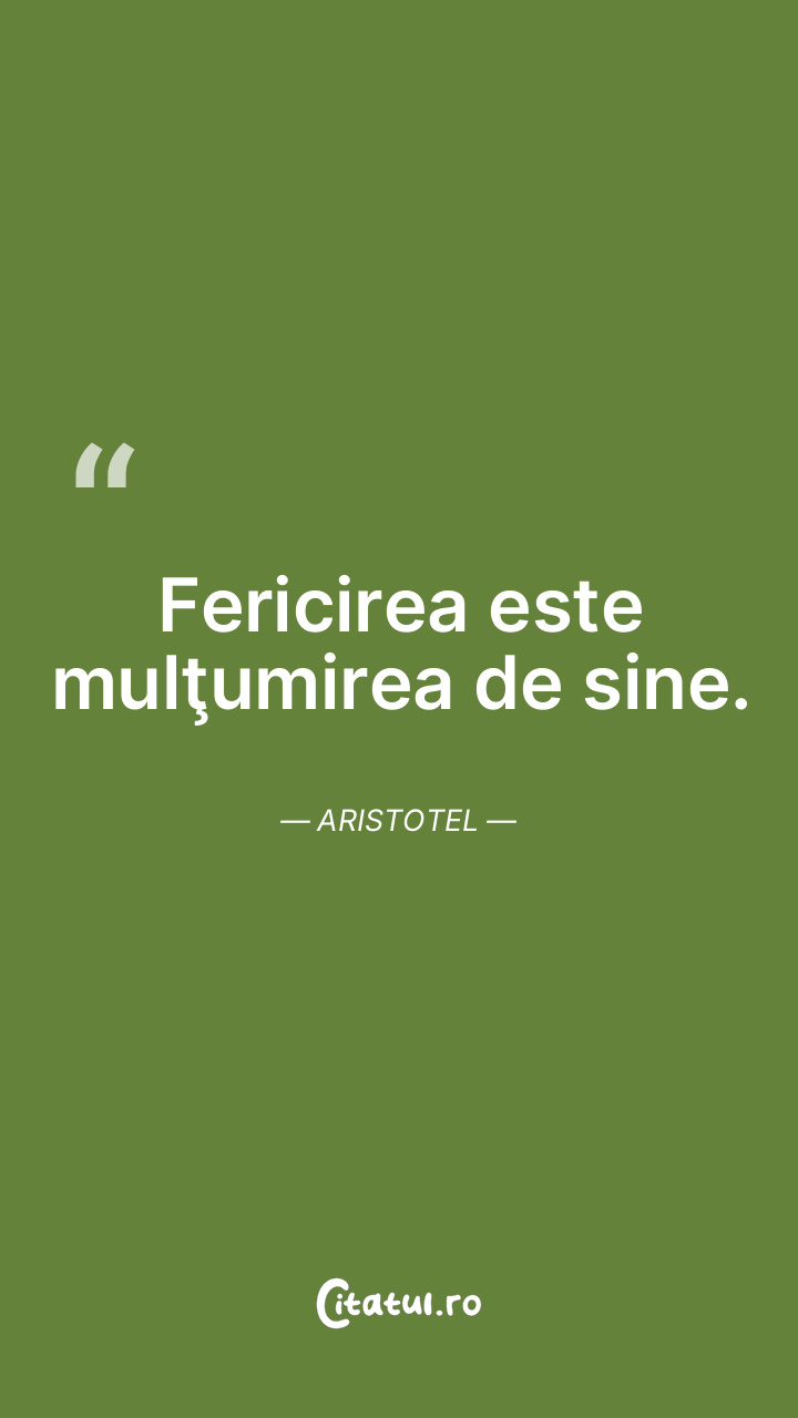 Fericirea este mulţumirea de sine. Aristotel
