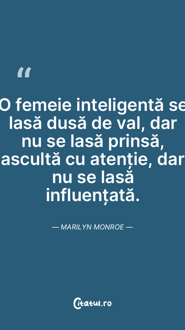 O femeie inteligentă se lasă dusă de val, dar ... Citește tot citatul >