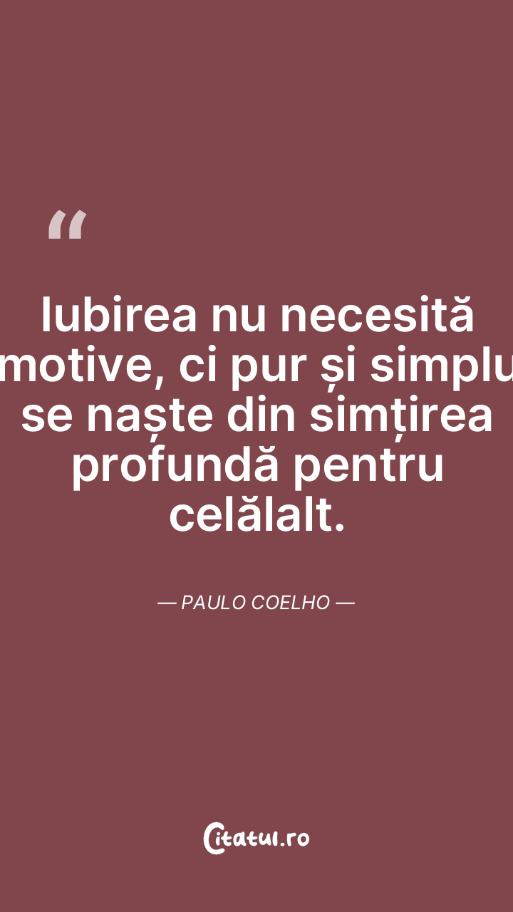 Iubirea nu necesită motive, ci pur și simplu ... Citește tot citatul >