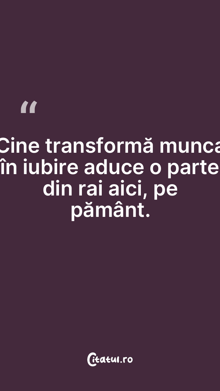 Cine transformă munca în iubire aduce o parte ... Citește tot citatul >