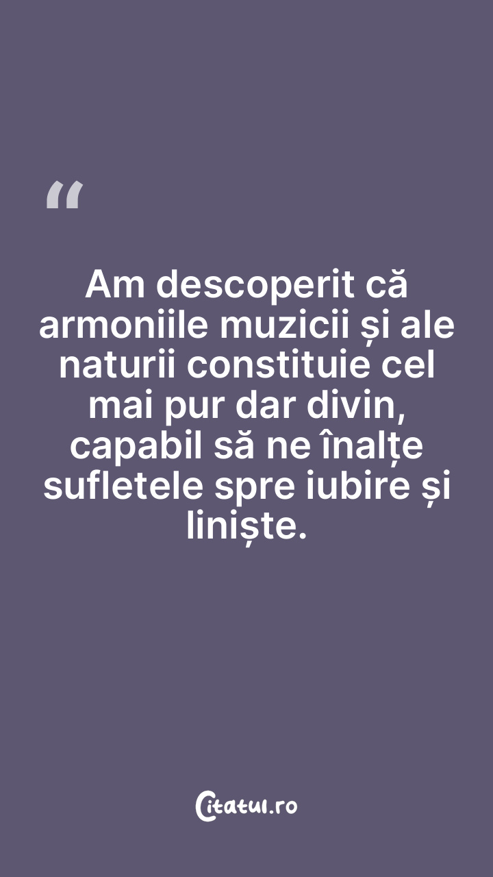 Am descoperit că armoniile muzicii și ale nat ... Citește tot citatul >