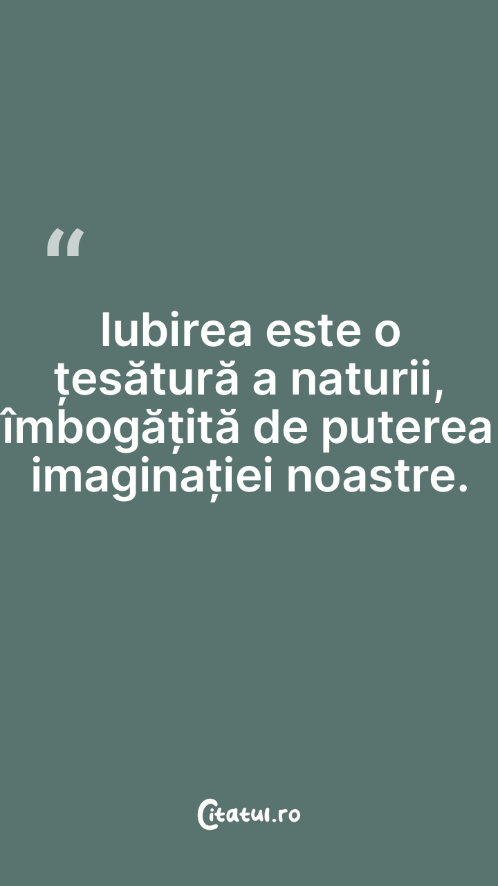Iubirea este o țesătură a naturii, îmbogățită ... Citește tot citatul >